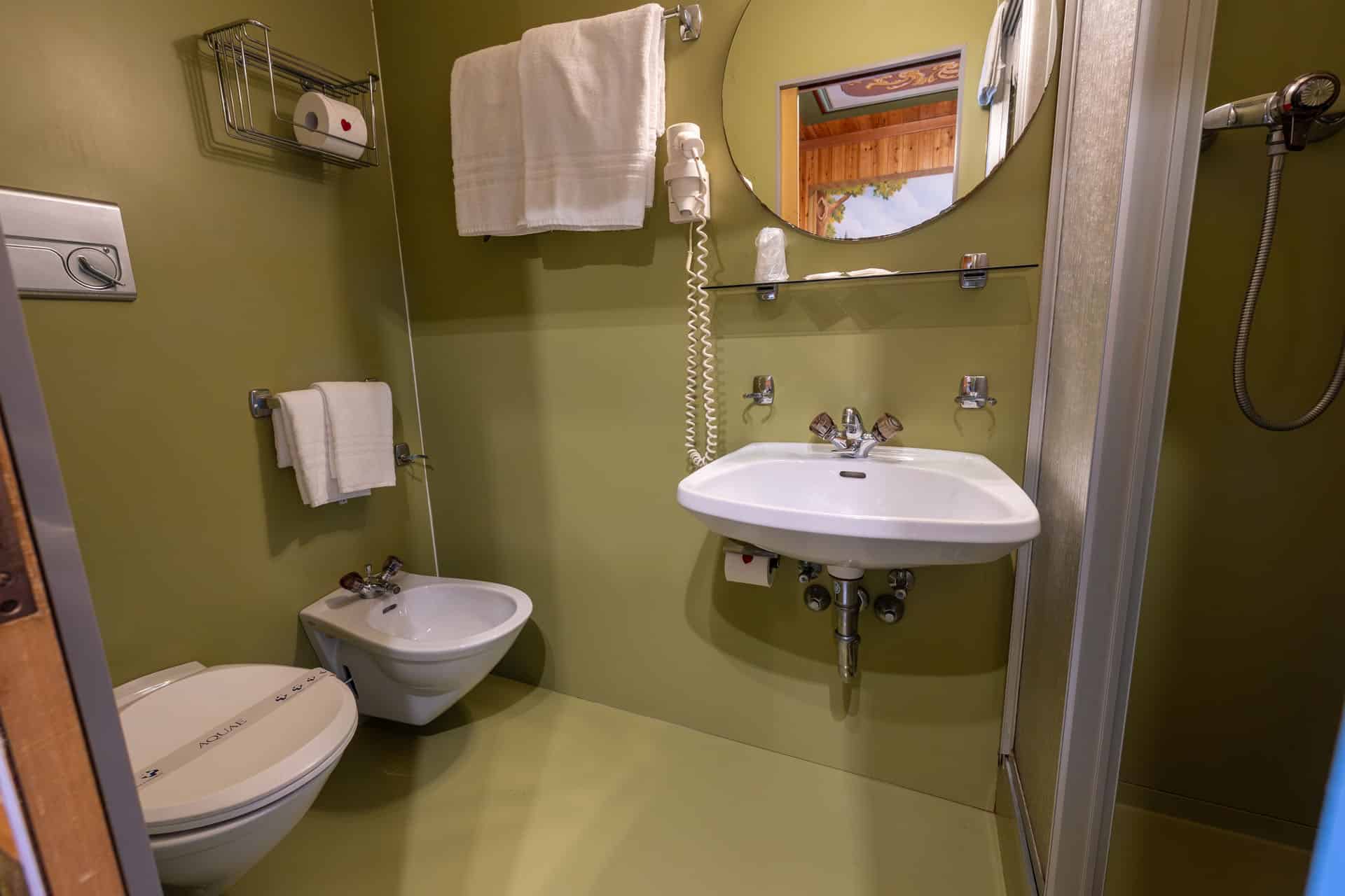 Camera rinfrescate in stile alpino con TV LCD e pareti dipinde a mano dall’artista locale Rita Savino.Alcune sistemazioni presentano un balcone. A disposizione un bagno privato con asciugacapelli eset di cortesia, asciugamani e lenzuola. In camera a disposizione bollitore per l’acqua calda, frigobar e Wi-Fi gratuito.