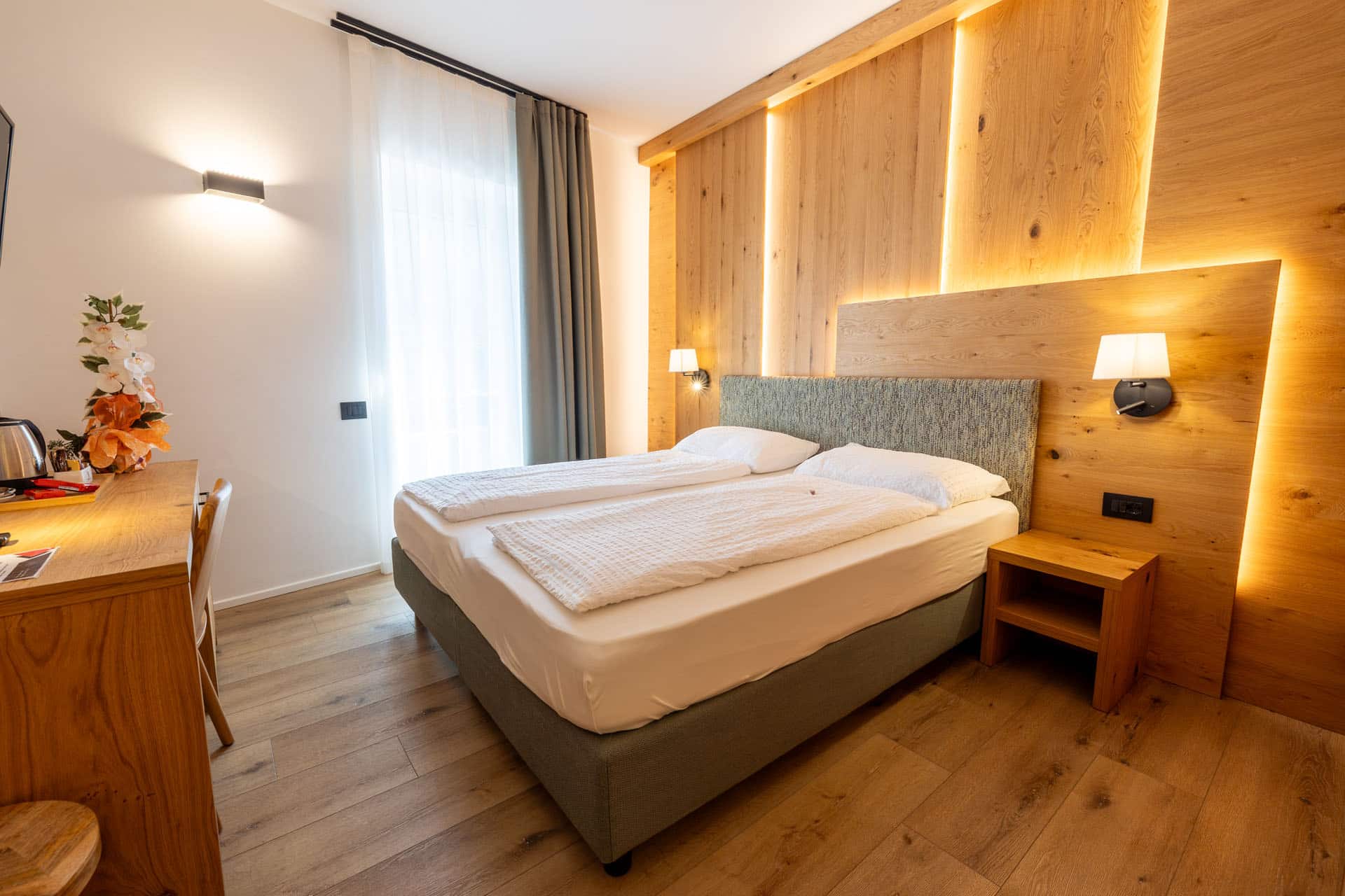 Nuove camere con inseriti in legno anticato, arredamento a tema alpino che avvolgono l’ospite in una piacevole sensazione di montagna, la camera è dotata di frigobar, bollitore dell’acqua calda e una delle due camera di questa tipoligia è adatatta per i disabili. A disposizione un bagno privato con asciugacapelli e set di cortesia, asciugamani e lenzuola.