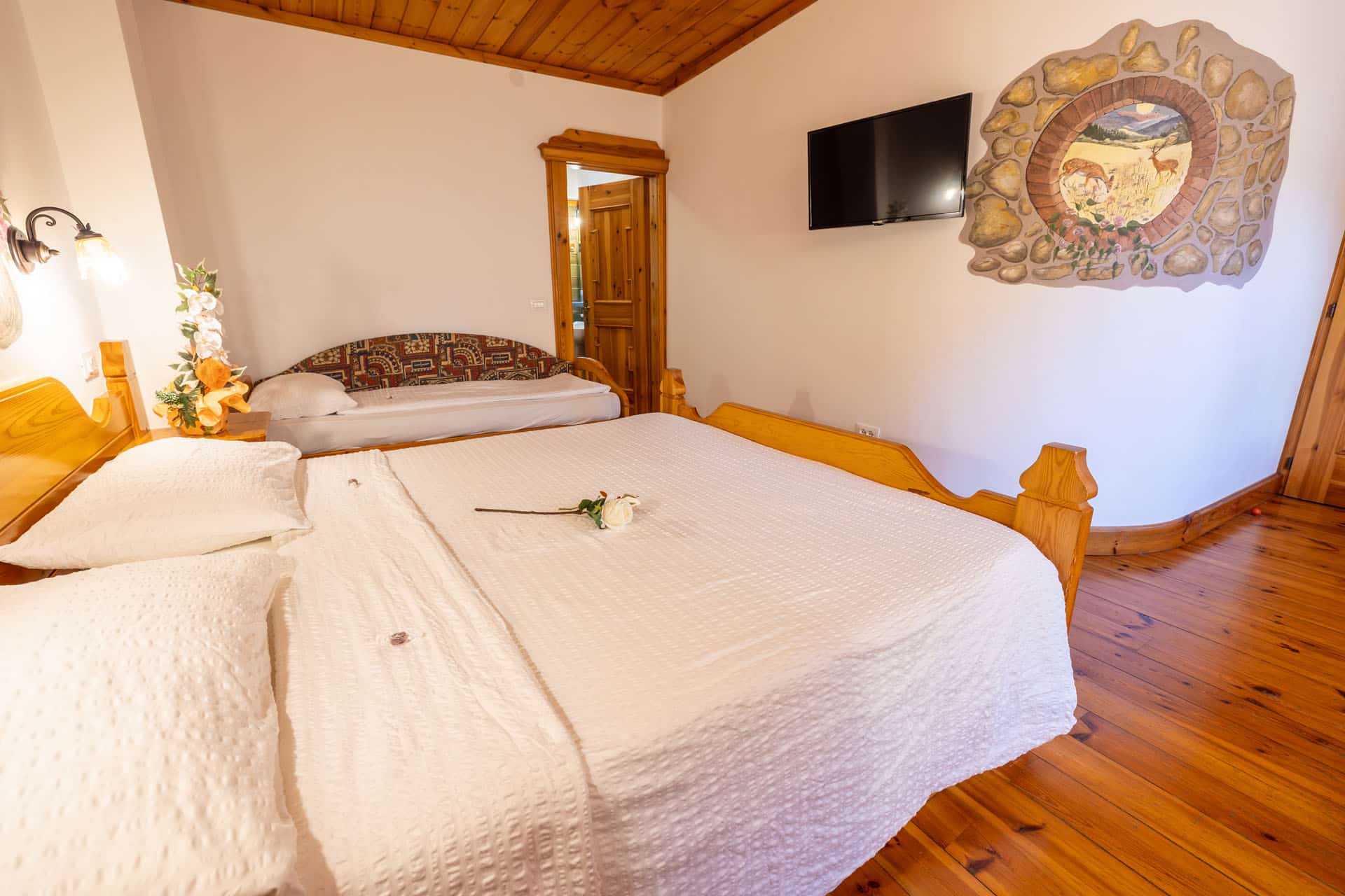 Camera rinfrescate in stile alpino o perlinate, con TV LCD e pareti dipinde a mano dall’artista locale Rita Savino.Alcune sistemazioni presentano un balcone e la vista su Castel Beseno. A disposizione un bagno privato con asciugacapelli e set di cortesia, asciugamani. In camera a disposizione bollitore per l’acqua calda, frigobar e Wi-Fi gratuito.