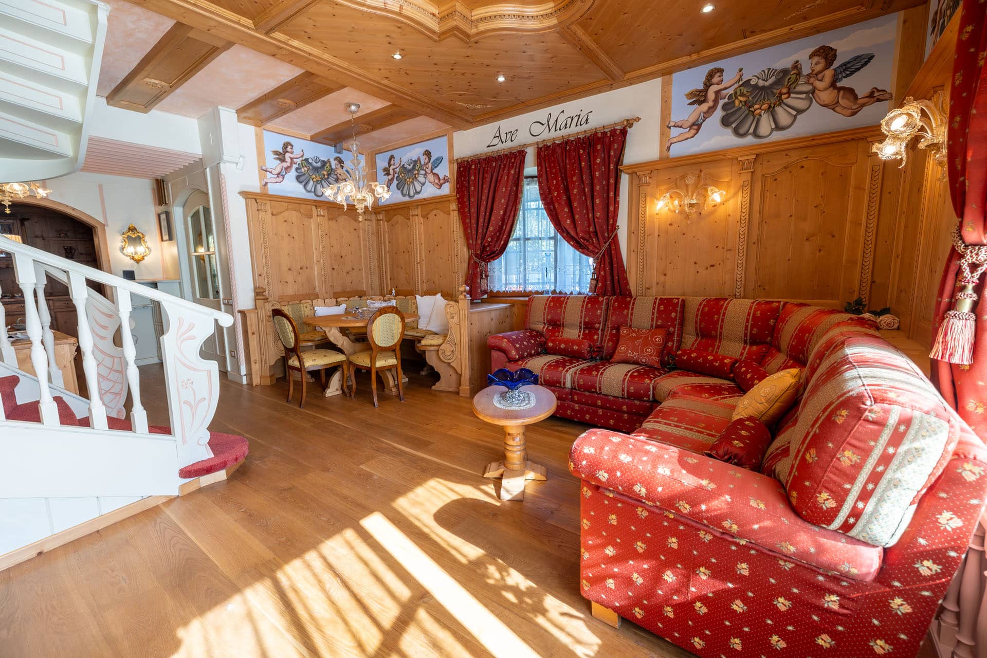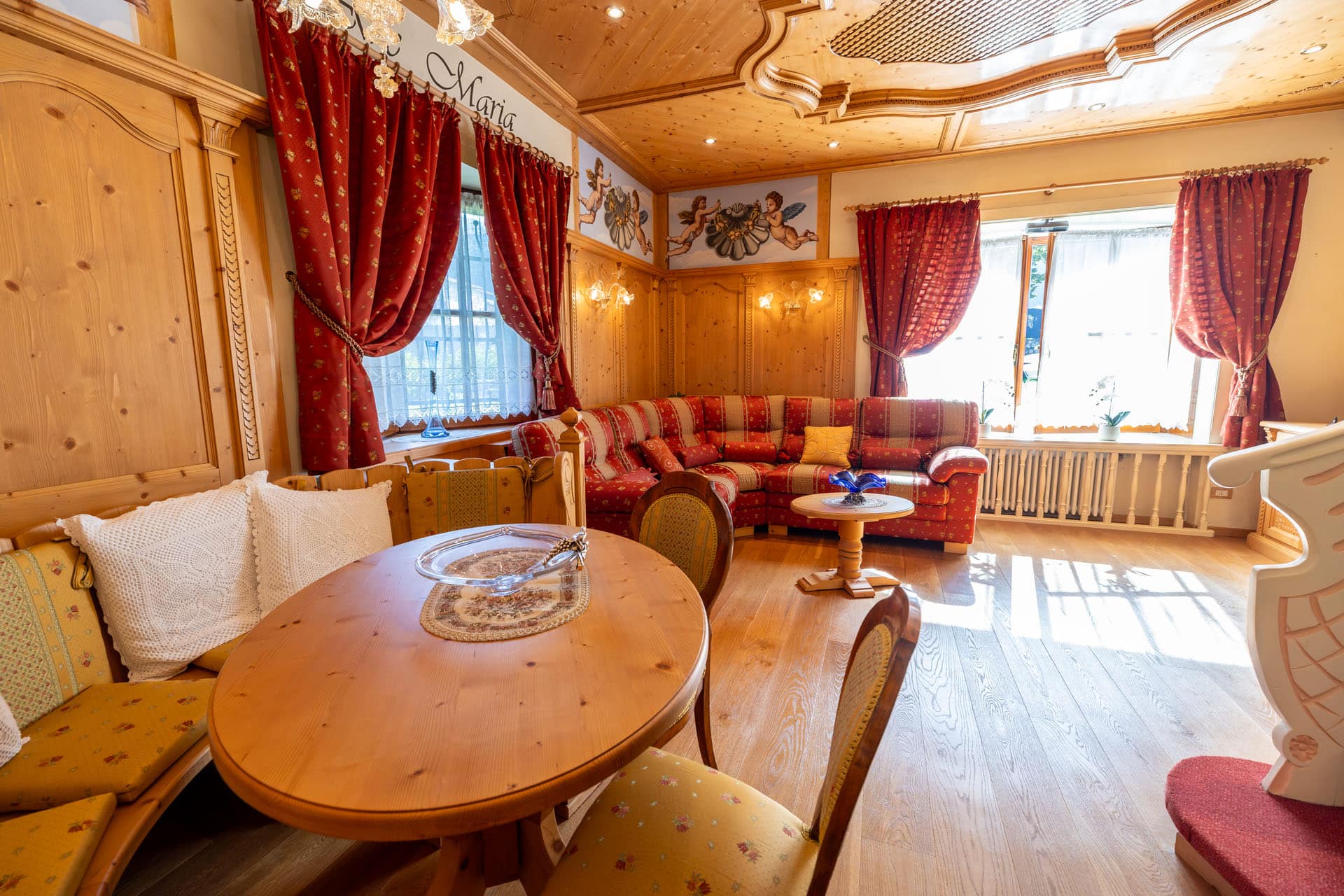 Camera rinfrescate in stile alpino con TV LCD e pareti dipinde a mano dall’artista locale Rita Savino.Alcune sistemazioni presentano un balcone. A disposizione un bagno privato con asciugacapelli eset di cortesia, asciugamani e lenzuola. In camera a disposizione bollitore per l’acqua calda, frigobar e Wi-Fi gratuito.